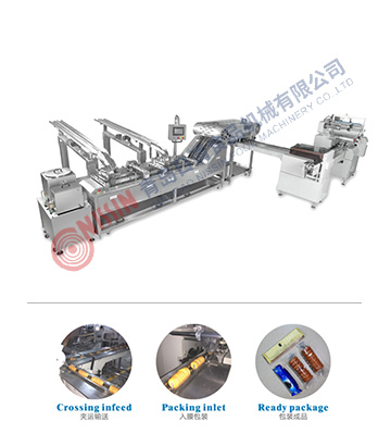 該機是我公司QNF360機型的換代產品。該無托盒包裝機使用伺服電機控制,使該機自動化程度進一步提升、性能更加穩(wěn)定可靠、操作更加簡便。最顯著的特點是:包裝產品尺寸變換非常簡單。 用 途: 適用于多枚餅干的無托盤集合大包裝,方、圓、橢圓等各種形狀餅干皆可。 主要技術參數(shù): 包裝能力:30-100包/分(據(jù)包裝膜材質,厚度及包裝規(guī)格確定) 包裝規(guī)格:長100-240mm,寬40-80mm,高40-70mm 總機尺寸:主機部分4020mm*1150mm*1840mm 供料部分3100*580mm*1130mm 裝機總容量:5.2KW, 單相 220V, 50Hz 總重量:1200kg 包裝材料:紙/PE,OPP/PE,OPP/AL/PE等適合于加熱封口的包裝材料 機械特性 l 機械結構的整體設計簡單、合理,操作簡便,調節(jié)方便 l 使用夾運輸送機構,完全可靠的解決了包裝不同長度物品尺寸變換的繁瑣及倒餅的弊病。 l 縱封裝置采用三對牽引輪構成,保證封口高速封合、穩(wěn)定、美觀。 l 精巧的自動供料裝置可將包裝物準確無誤投放于主機進入包裝封口。 l 包裝尺寸調節(jié)方便快捷。 電氣特性 l 送膜、供料采用數(shù)字伺服電機控制系統(tǒng) l 供料部分采用運動控制單元,供料同步、準確、自動記憶 l 變頻調速,方便、準確、可靠 l 色表追蹤點自動定位、自動跟標 l 包裝袋自動測量、記憶 l 供料位置即使在運動中也可隨意調整